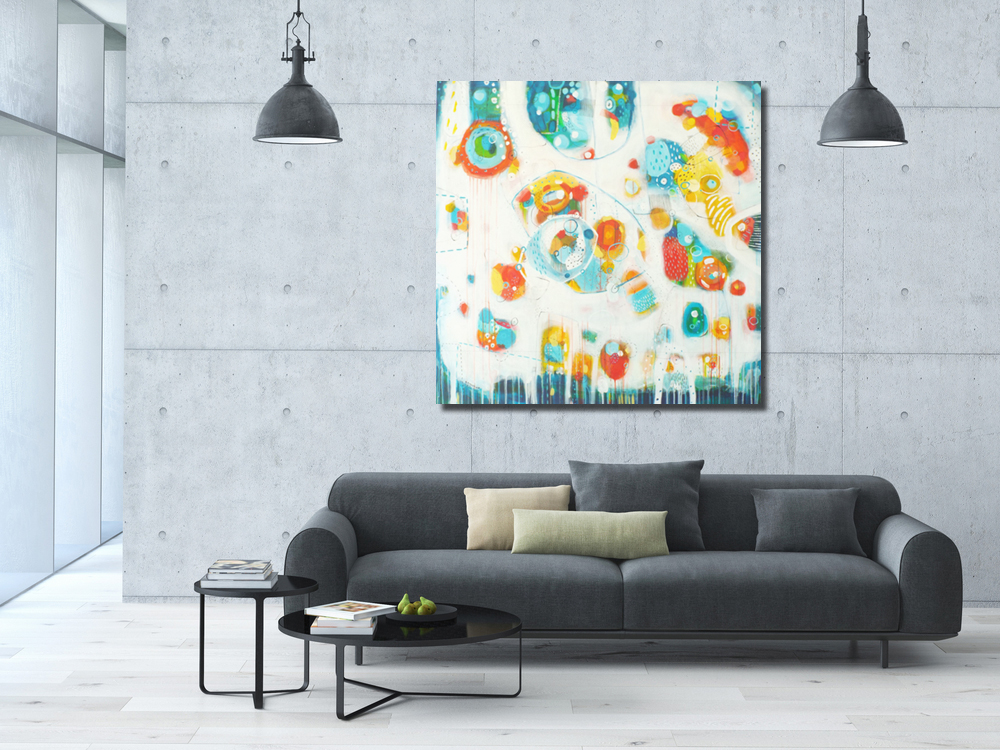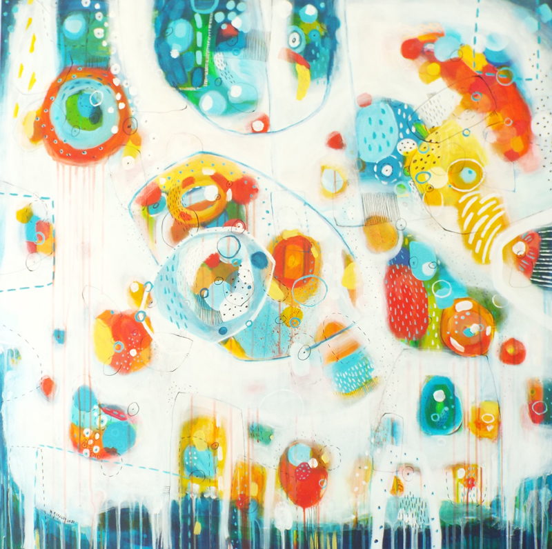 „Be happy II” 2020r., akryl/ płótno, wym. 100/100cm.