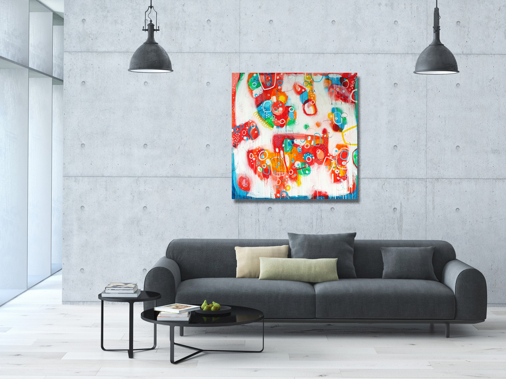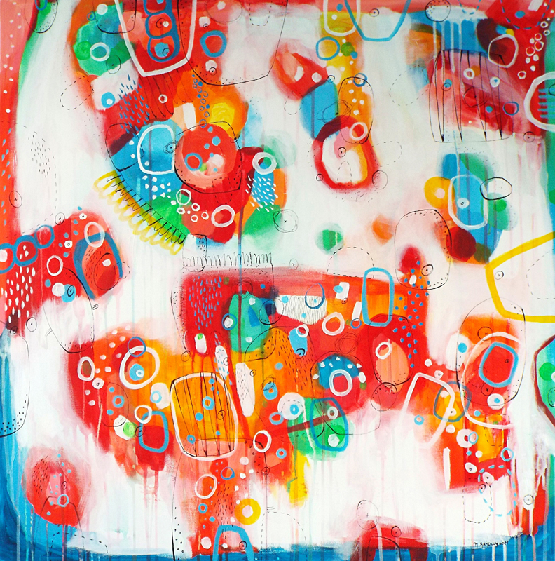 „Moje miasto II” 2021r., akryl/ płótno, wym. 80x80cm.