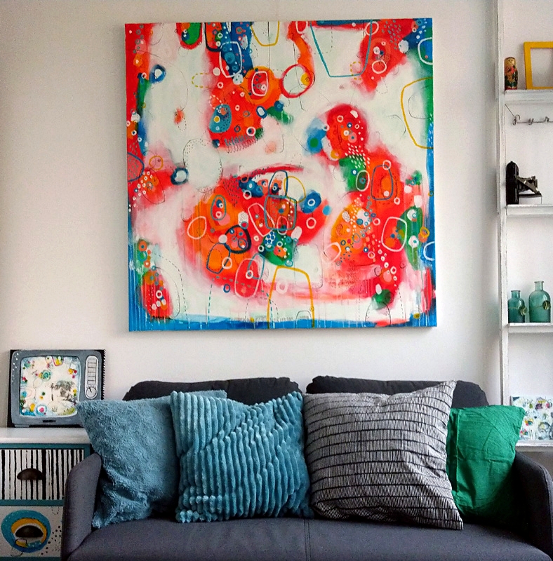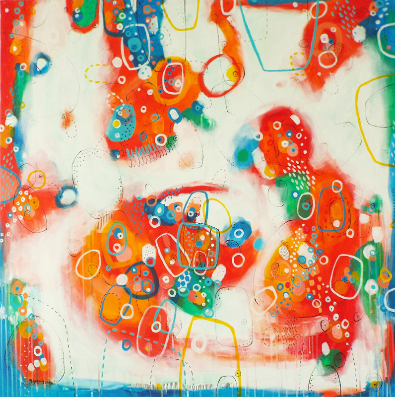 „W czerwieni” 2021r., akryl/ płótno, wym. 100x100cm