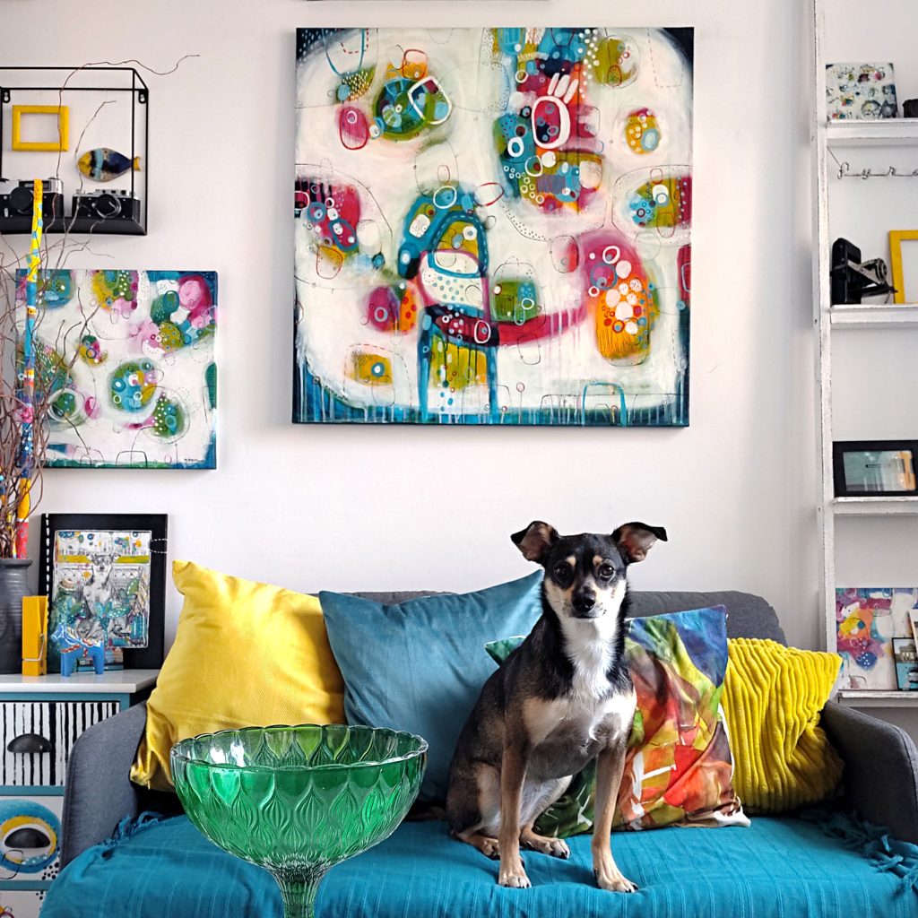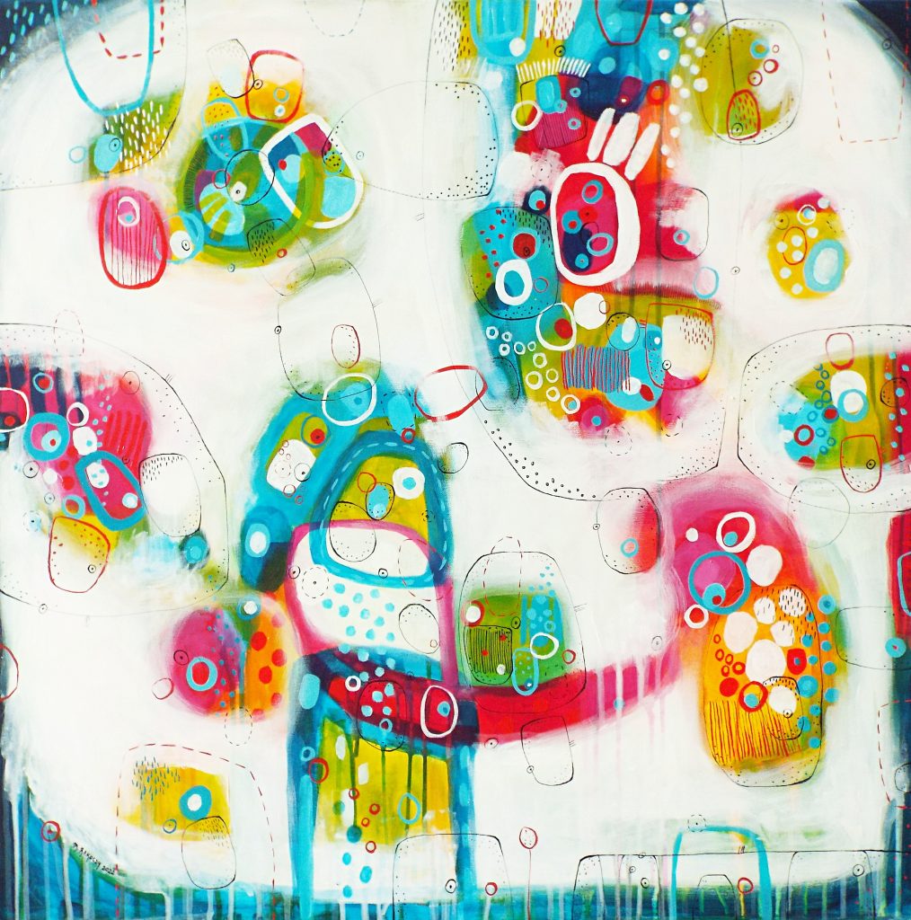 „Kolorowa przystań”, 2022r., akryl/ płótno, wym. 80x80cm